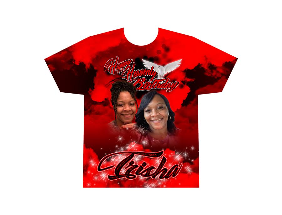 100% White Polyester Shirt (true to size). Choose up to 3 colors. Pick a theme of your liking.